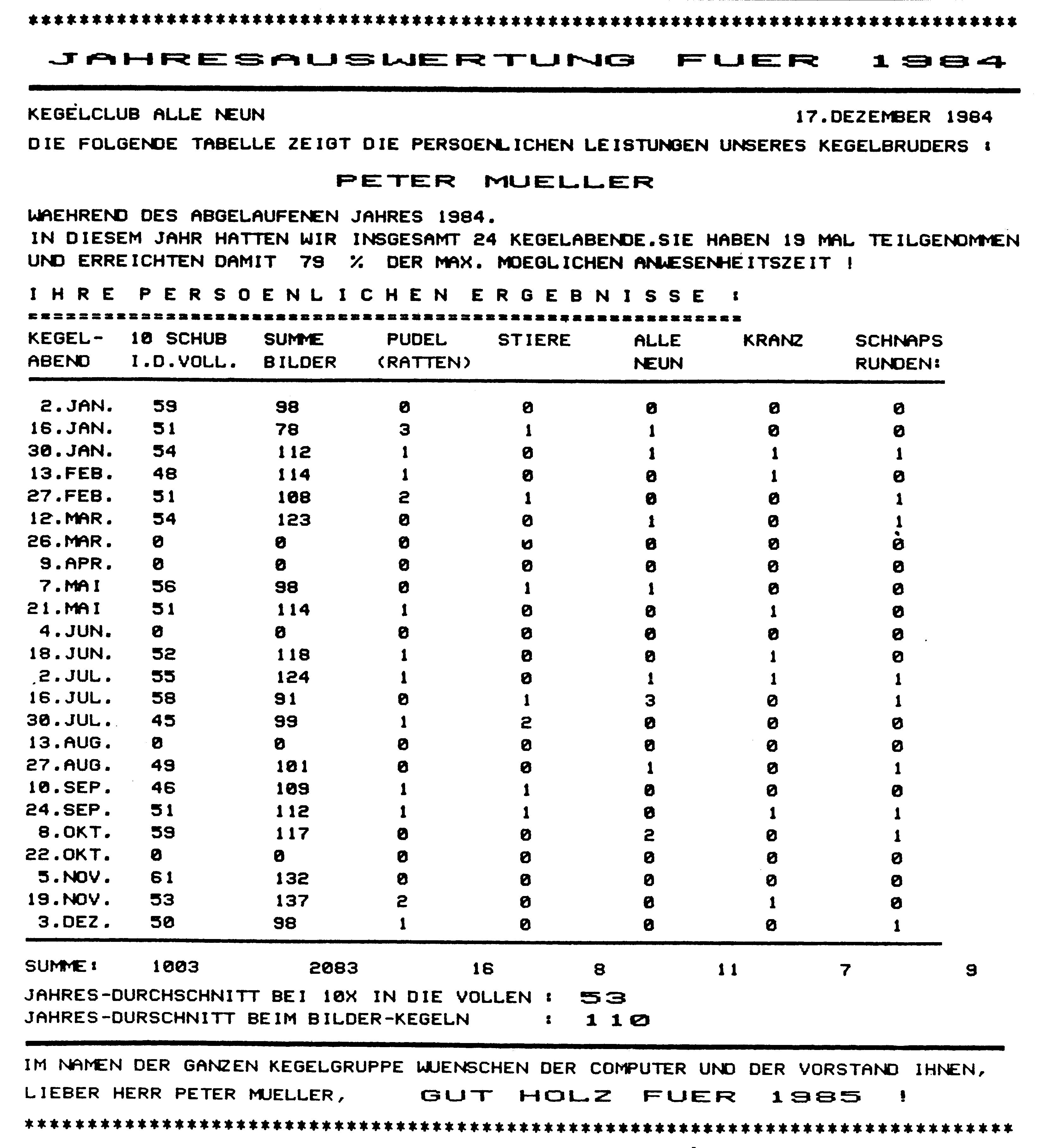 Jeder Kegelverein macht mit viel Aufwand die statistische Auswertung der Kegelresultate. Mit dem Programm »Jahresauswertung« für den Commodore 64 bleibt Ihnen die Rechnerei erspart.