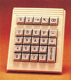 Die Hextastatur für den MSE gibt es inzwischen zu kaufen. Sowohl als Bausatz oder als Fertiggerät. Der Bausatz ohne Gehäuse kostet 59 Mark, das Gehäuse 19,50 Mark. Der Gehäuseausschnitt für das Tastenfeld ist bereits vorhanden. Das Fertiggerät (Bild) wird für 96 Mark angeboten. Die Bestellbezeichnung lautet STH 24. Geben Sie genau an, ob Bausatz, Gehäuse oder Fertiggerät.