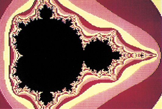Zum Schluß noch ein Wort zur Rechenzeit: Obwohl die Berechnungsroutine in Assembler geschrieben ist, muß man auf die fertige Grafik manchmal bis zu 8 (acht!) Stunden warten, da ja für 32 000 Punkte bis zu 250 mal quadriert, subtrahiert und verglichen wird.