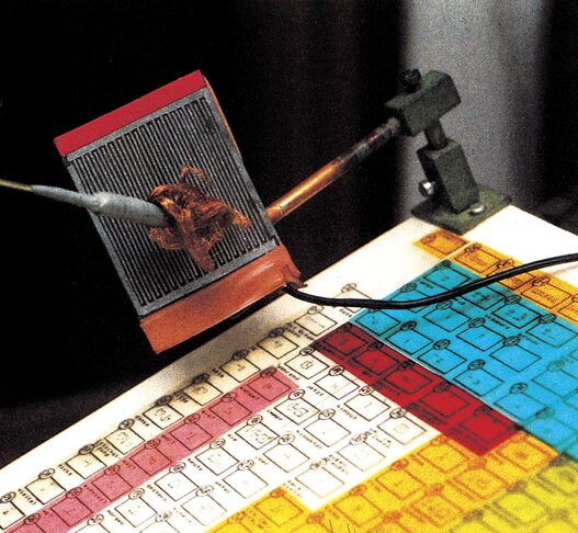 Ein eigenes Editor-Programm ermöglicht es Eltern und Lehrern, eigene, auf die Erlebniswelt des Behinderten abgestimmte Symbole zu erstellen und zu speichern. Alles, was sich mit 56 x 32 Punkten darstellen läßt, ist machbar. Die Schalter waren lange Zeit der Pferdefuß der Entwicklung. Erstens sollten Sie nicht allzu teuer sein, andererseits darf keine Kraftaufwendung anfallen. Gelöst wurde das Problem mit zwei kammartig ineinandergreifenden Leiterbahnnetzen, die über eine Sicherheitsschaltung mit dem Joystick-Port 1 verbunden sind. Der Vorteil dieser Belegung ist, daß die Tasten SPACE und 1 der Commodore-Tastatur zur Steuerung für Betreuer dienen können. Das Programm, das derzeit bereits in Graz angewendet wird, hat sich auch im Familieneinsatz bewährt. Die Philosophie, die dahinter steckt, ist, Kommunikation in schriftlicher Form zu ermöglichen, ohne vom Betreuer abhängig zu sein. Für das Bliss-Programm gibt es bereits Folgeprogramme. Beispielsweise Bliss-Bilderbücher am Computer, in denen bis zu 18 Bilder je Diskettenseite mit Bliss-Texten versehen sind. Die Bilder werden entweder zuerst digitalisiert (Printtechnik-Digitizer) oder gleich mit »Blazzing-Paddles« gezeichnet.
