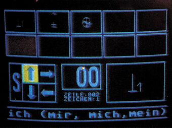Einen neuen Weg beschritt Wolfgang Resele, der für Fortgeschrittenere ein Textverarbeitungsprogramm geschrieben hat, das entweder über einen Taster (Intervallschaltung) oder über zwei Tasten (Ja/Nein-Abfrage) gesteuert wird und alle wichtigen Funktionen einer einfachen Textverarbeitung hat. Im unteren Teil werden Menü- und Buchstabenauswahl dargestellt, im oberen Teil der Text. Dieser kann in normaler Größe oder umschaltbar doppelt groß dargestellt werden.