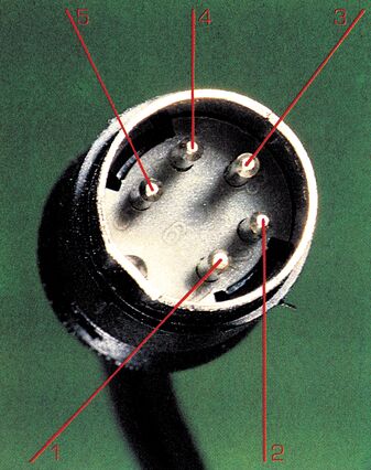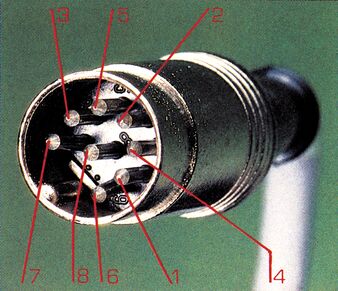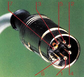 Der 8polige Kleingerätestecker ist der für uns wichtigste. Mit ihm lassen sich das Farb- und Synchronisationssignal am C 64 ausnutzen, um damit das beste Bild herauszuholen.