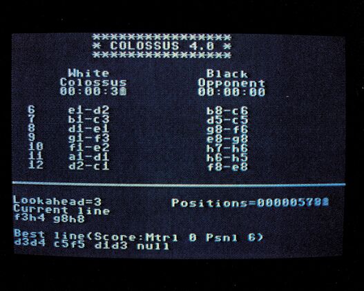 Das bedeutet, daß der Spieler einige Parameter des Programms (Bewertungsschema, maximale Halbzugtiefe etc.) verändern kann und somit Einfluß auf die Spielstrategie von Colossus hat. Dementsprechend kann man Colossus auch bei seinem Denkvorgang beobachten, sich Wertungen und Zugvorschläge geben lassen. Diese Informationen werden auf einem zweiten Bildschirm ausgegeben. Zwischen Brett und Informationsschirm kann per Tastendruck hin- und hergeschaltet werden.