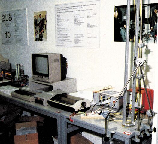 Diese Meldung betrifft alle Lehrer und Schulen, die für ihren Unterricht Computer einsetzen wollen. Die Zentralstelle für Computer im Unterricht vermittelt Programme aus den unterschiedlichsten Unterrichtsbereichen. Auf der Systems wurden einige interessante Physikexperimente mit dem C 64 vorgeführt. Das Bild zeigt einen Aufbau zur Ermittlung der Erdbeschleunigung.