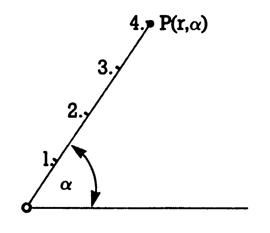 Den Ort von Punkten zu charakterisieren, ist im Prinzip noch auf vielerlei Weise möglich. So gibt es schiefwinklige Koordinatensysteme (siehe Bild 4) und manchmal verwendet man auch das sogenannte »polare« Koordinatensystem (siehe Bild 5). Hier werden die Länge des aus dem Ursprung kommenden Strahls und der Winkel, den dieser mit der Horizontalen bildet, zur Festlegung eines Ortes verwendet. Gebräuchlichstes Koordinatensystem allerdings ist das »kartesische«, angeblich benannt nach dem französischen Philosophen und Mathematiker Rene Descartes (von ihm stammt der berühmte Ausspruch »Ich denke, also bin ich«). Bild 6 zeigt ein kartesisches System, das durch die aufeinander senkrecht stehenden Achsen charakterisiert ist. Im allgemeinen verwendet man ein »rechtshändiges« System.