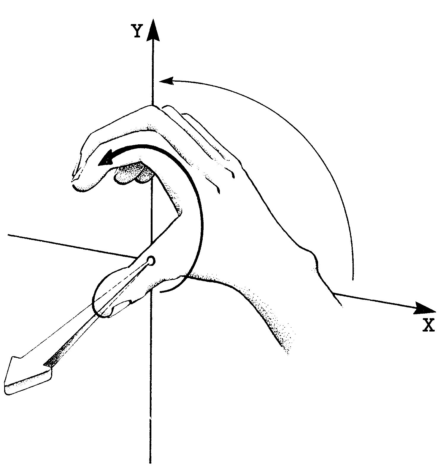 Rechtshängig deshalb, weil beim Drehen der X-Achse um den Ursprung (also um den Punkt P0(0,0)) diese auf dem kürzesten Wegzur Y-Achse die Richting einschlägt, in die die Finger der rechten Hand zeigen. Der Daumen weist dabei auf den Betrachter (siehe Bild 7).