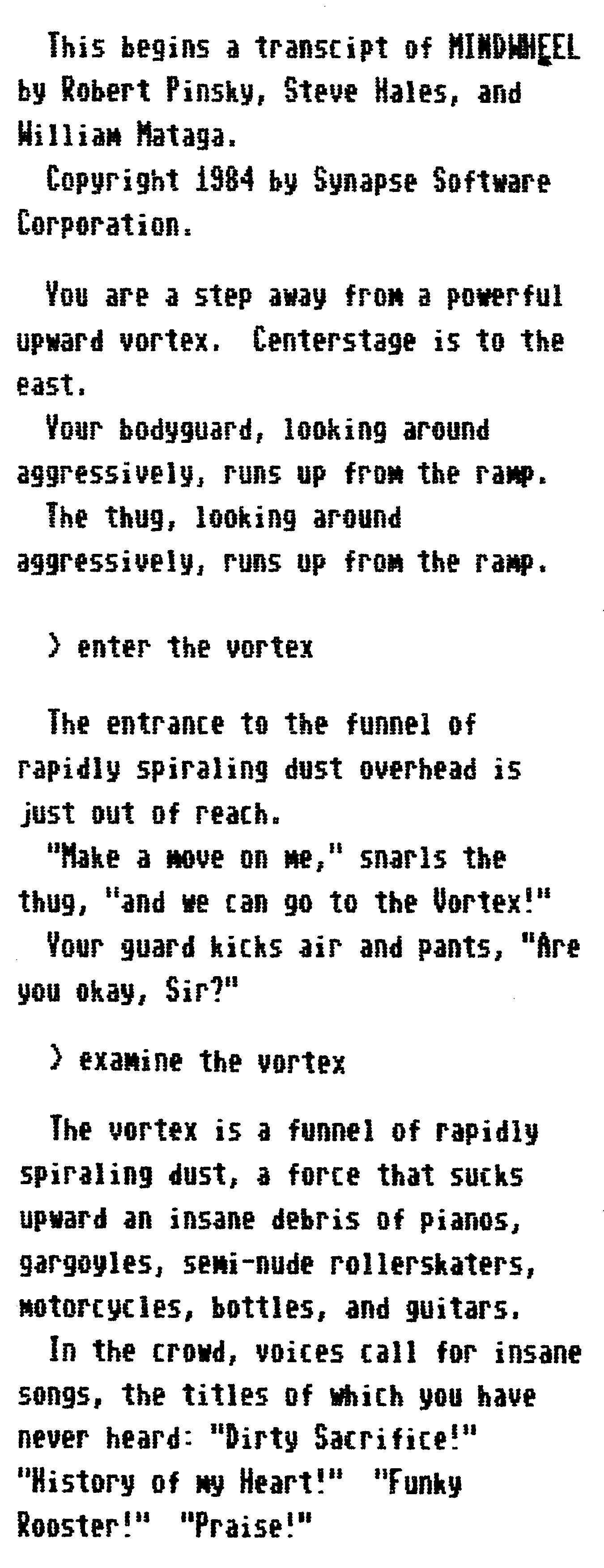 In den letzten Tagen hat sich einiges auf dem Adventure-Markt getan. So gibt es zwei neue Titel von Infocom, ein deutschsprachiges Adventure mit einem Hauch von Infocom-Stil und schließlich ein Programm, das im Augenblick ganz Amerika von den Stühlen reißt. Die Rede ist von »Mindwheel«, dem ersten Text-Adventure von Synapse/Broderbund.