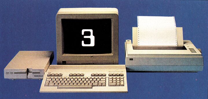 Das nächste System (Bild 2) das wir Ihnen vorstellen, ist der C 128 zusammen mit einem 1901 Monitor, dem Floppy-Laufwerk 1571 und dem Uchida DWX 305 Typenraddrucker. Der C 128 ist ein Computer, der im 80-Zeichen-Modus mit der richtigen Software zu sehr guten Leistungen fähig ist. Das 1571-Diskettenlaufwerk ist relativ schnell und speichert 340 KByte auf einer 5¼-Zoll-Diskette. Zusammen mit dem auch für 80-Zeichen-Darstellung sehr gut geeigneten 1901-Monitor ist die abgebildete Konfiguration ein harmonisierendes System. Einzig der Drucker ist es, bei dem darauf geachtet werden muß, daß er sich mit dem C 128 versteht. Wir haben den Uchida DWX 305 aus drei Gründen ausgewählt: Erstens verfügt er mit seinen vielen Typenrädern über exzellente Schriftqualitäten, zweitens ist er mit 598 Mark ausgesprochen preiswert. Drittes Merkmal des DWX 305 ist seine Centronics-Schnittstelle, die der C 128 auf verschiedene Weise bedienen kann. Da ein Typenraddrucker niemals in der Lage sein wird, alle Zeichen, also auch die Grafikzeichen des C 128 zu drucken, genügt eine Lösung, die so einfach wie möglich ist. Preislich fast nicht mehr zu schlagen ist da das einfache User-Port-Kabel zwischen C 128 und Drucker (zirka 50 Mark). Leider birgt diese Methode den Nachteil in sich, daß man den User-Port auch mit Software bedienen muß. Diese Ansteuerung übernimmt aber die zu diesem System gehörende Softwareempfehlung Protext 128 (89 Mark). Dieses Textprogramm ermöglicht die optimale Anpassung an fast jeden Drucker. Da ist die Ansteuerung des Uchidas problemlos. Über die Leistungsfähigkeit von Protext 128 können Sie sich in einem eigenen Artikel in dieser Ausgabe ein Bild machen. Dort wird auch beschrieben, wie man mit Protext 64 aus seinem Textsystem ohne viel Umstand ein komplettes DFÜ-System macht. Insgesamt kostet dieses System zirka 3830 Mark.