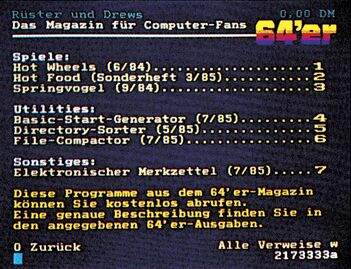 Markt&Technik Verlag Redaktion 64’er Herrn Harald Meyer Hans-Pinsel-Str. 2 8013 Haar bei München.Info: Ruster und Drews, Bergheimer Str. 134b, 6900 Heidelberg, Tel. 0 62 21/16 33 24
