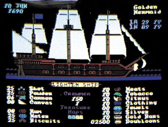 Die zweite Neuvorstellung war die Piratensimulation »Crossbones« (Bild 15). Man hat dreißig Jahre Zeit, um sich als Pirat in der Karibik auszutoben um sich dann zur Ruhe zu setzen. Grafisch und spielerisch ist sehr viel los: Da kann man Bündnisse eingehen, Schiffe angreifen und entern, Schätze vergraben etc. Gespielt wird auf einer vier Bildschirme großen, hochauflösenden Karte der Karibik, auf der jeder einzelne von 256 000 Bildpunkten einen tatsächlich vorhandenen Ort darstellt. Also Vorsicht beim Schatzvergraben, daß man ihn später auch wiederfindet. Zum großen Umfang gesellt sich eine hohe Detailtreue. So werden beispielsweise die »Fahrzeiten« des Schiffs nach sehr vielen Faktoren wie Wetter, Beladung und ähnlichem berechnet.