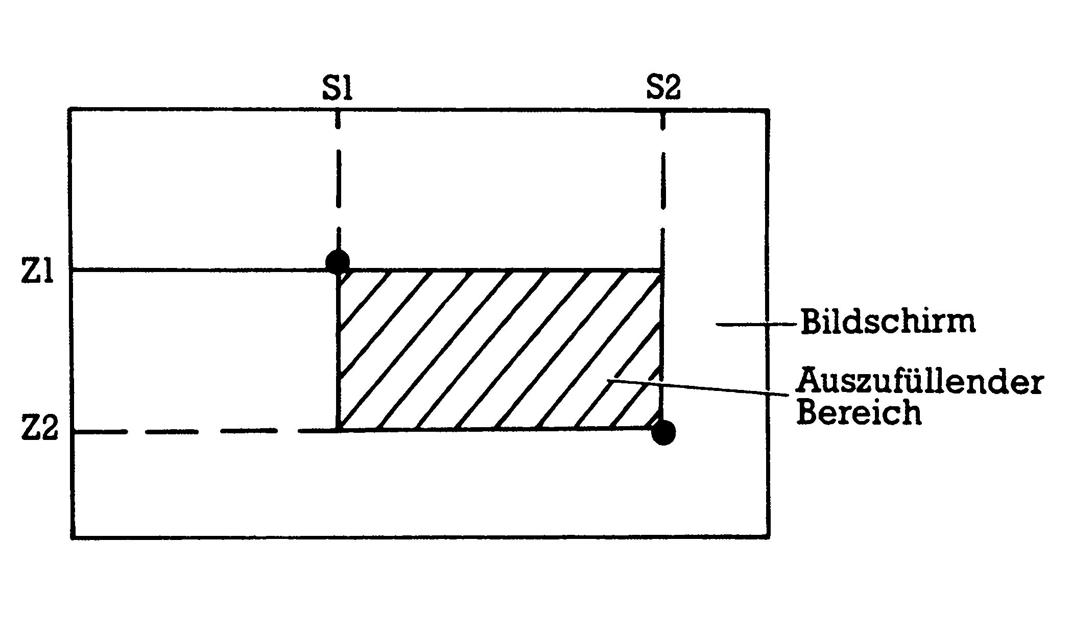 Ein weiteres Problem tritt in Leserfragen häufig auf: Wie kann man beliebige rechteckige Teile des Bildschirmes mit Zeichen ausfüllen? Sehen wir uns das also auch mal an: Bild 5 zeigt, was gemeint ist und welche Bezeichnungen wir im folgenden verwenden werden.
