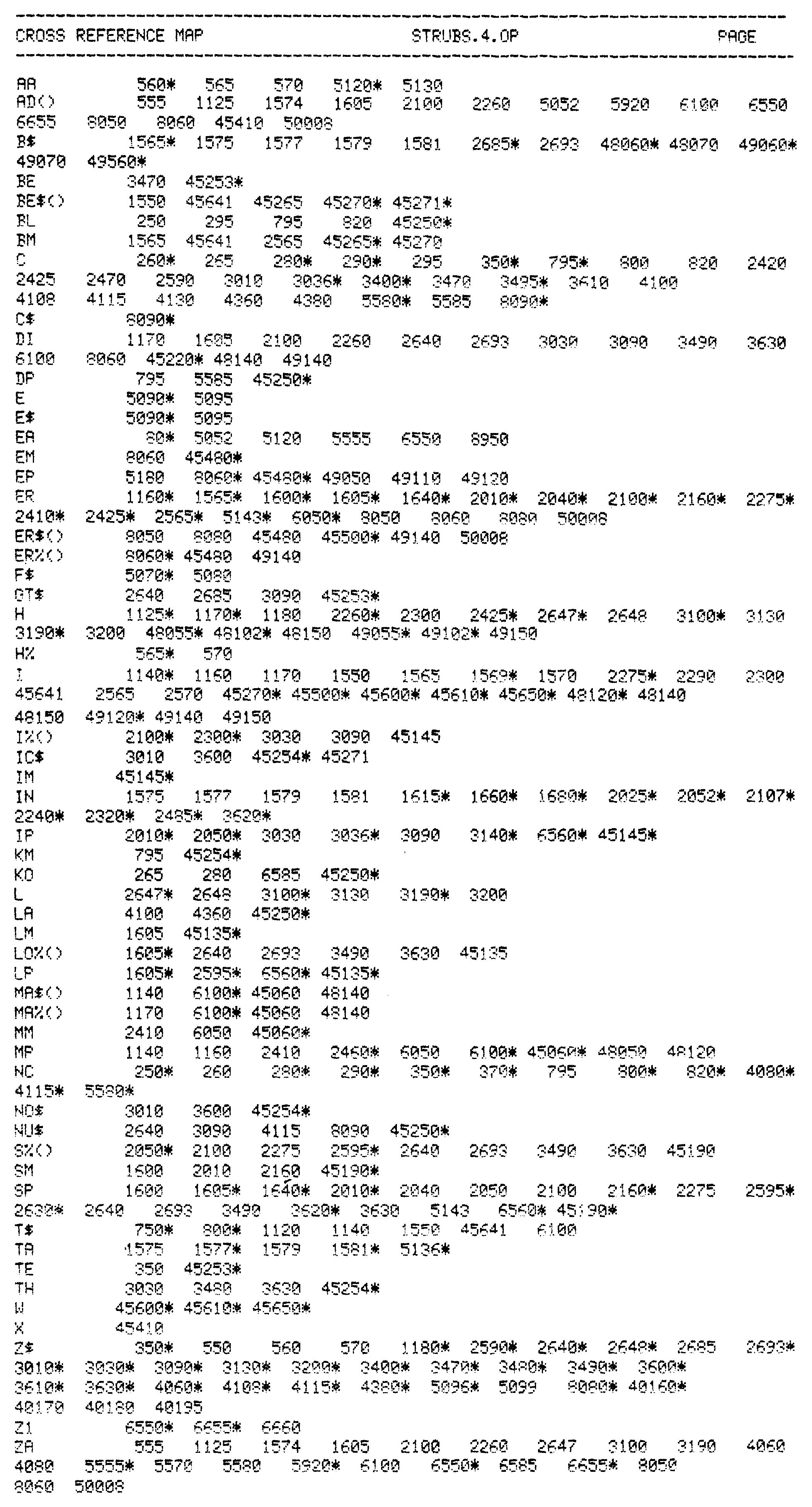 Kommen wir abschließend zur Dokumentation: Vom Hobby-Programmierer kann kein Mensch erwarten, daß er Berge von Dokumentationsmaterial anlegt, die den Umfang des Programmtextes um ein Vielfaches übersteigen. Deshalb ist es gerade hier wichtig, Programme weitgehend selbstdokumentierend zu schreiben. Im Gegensatz zu höheren Programmiersprachen mit ihren zahlreichen Deklarationspflichten ist der Basic-Programmierer nahezu ausschließlich auf Kommentare angewiesen. Da Strubs Kommentare bei der Übersetzung eleminiert, stehlen diese weder Speicherplatz noch Laufzeit. Der Programmierer kann also ohne Bedenken einen exzessiven Gebrauch von Kommentaren machen.