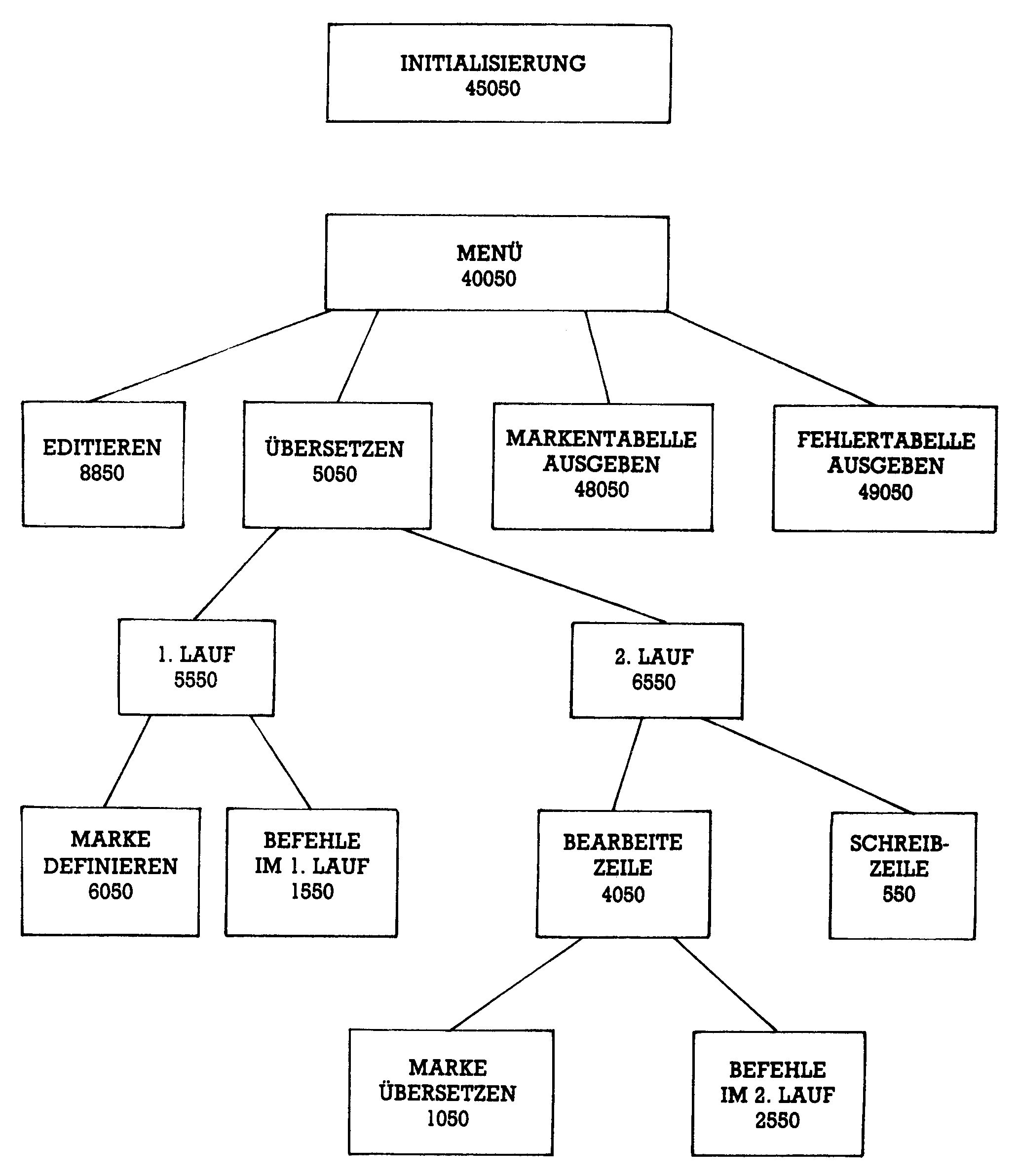 Dieses Verfahren hat allerdings den Nachteil, daß Programme immer nur zusammen mit dem Compiler abgespeichert und editiert werden können. Insbesondere ist es damit nicht möglich, Quellprogramme aus fertigen Bausteinen (Modulen) zusammenzusetzen.