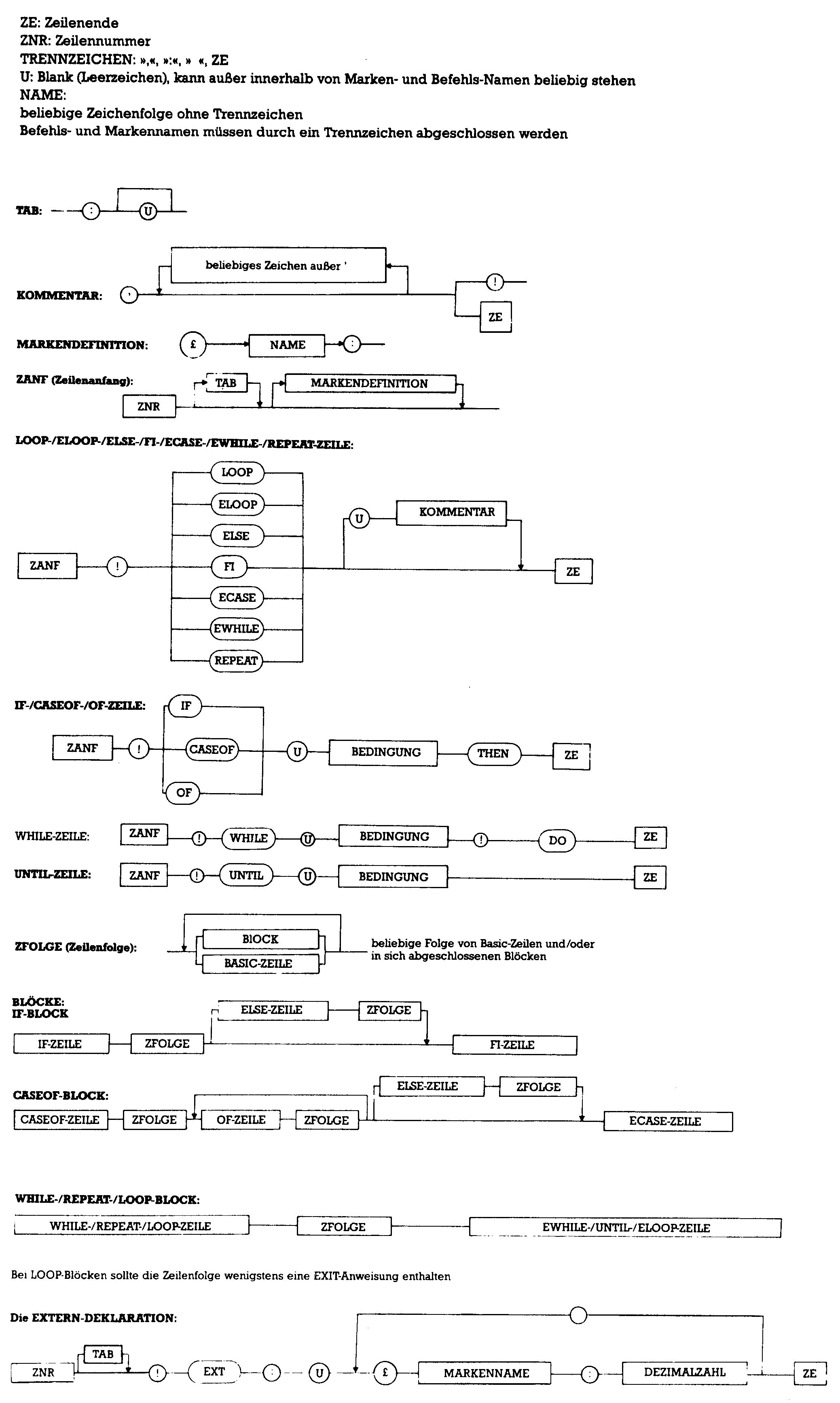Deshalb arbeiten die Basic-Interpreter im allgemeinen so, daß solche Blöcke — wie die FOR-Schleife — mindestens einmal durchlaufen werden. Deshalb muß bei solchen Interpretern — sofern sie überhaupt ein ELSE kennen — dieses in der gleichen Programmzeile wie das zugehörige IF stehen. Deshalb kennt zum Beispiel Simons Basic die REPEAT-UNTIL-Anweisung, die immer mindestens einmal durchlaufen wird, nicht aber die WHILE-Anweisung. Ein Precompiler aber kann bei der Übersetzung den Abschlußbefehlen eines Blockes — wie ELSE oder END-WHILE — ihre Zeilennummern zuordnen, so daß beim Programmlauf nicht mehr der Programmtext selbst, sondern nur die Kette der Zeilennummern durchsucht werden muß.