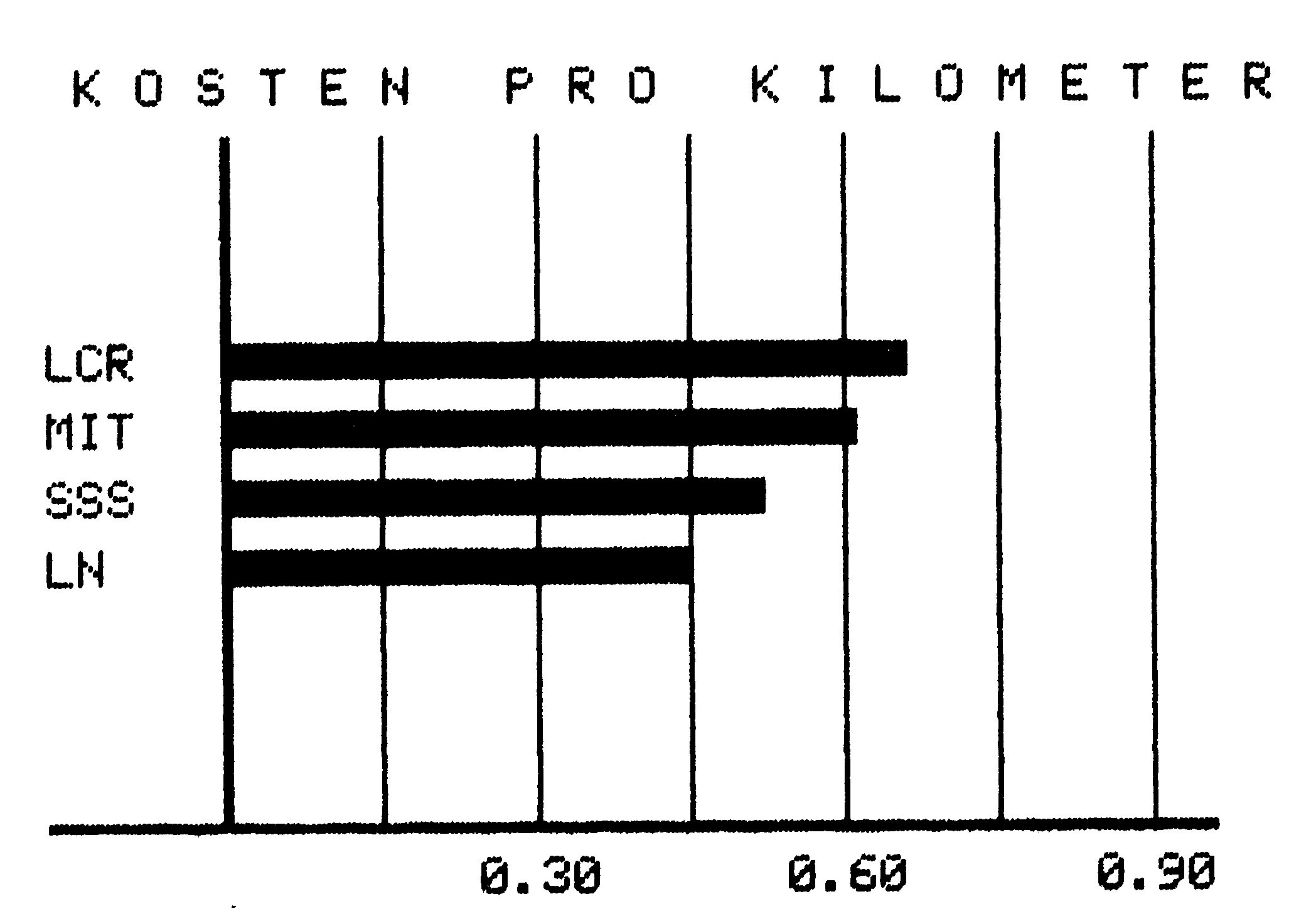 Was aber eine allgemeine Übersicht nicht leisten kann, ist heute im Zeitalter der Heimcomputer individuell zu lösen. Der Computer kann sich hier als das bewähren, was er eigentlich ist: Ein Rechner! Mit seiner Hilfe lassen sich Anschaffungskosten, Kosten pro Monat sowie pro Kilometer übersichtlicher in Tabellen darstellen und — was oft noch informativer ist — in Form von Balkendiagrammen grafisch darstellen.