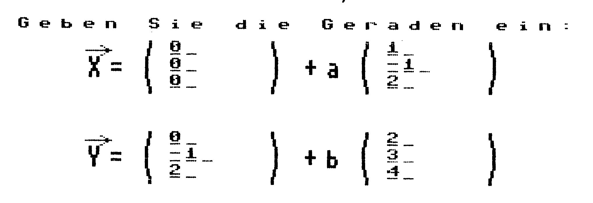 Von Ihnen wird die Eingabe von zwei Geraden erwartet: