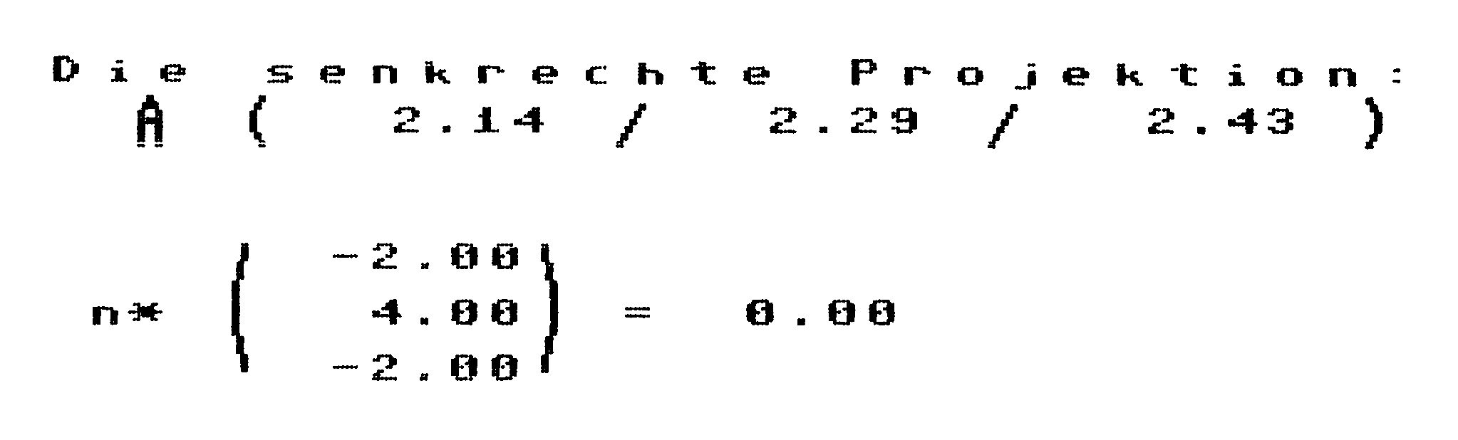 - die senkrechte Projektion des Punktes auf die eingegebene Ebene