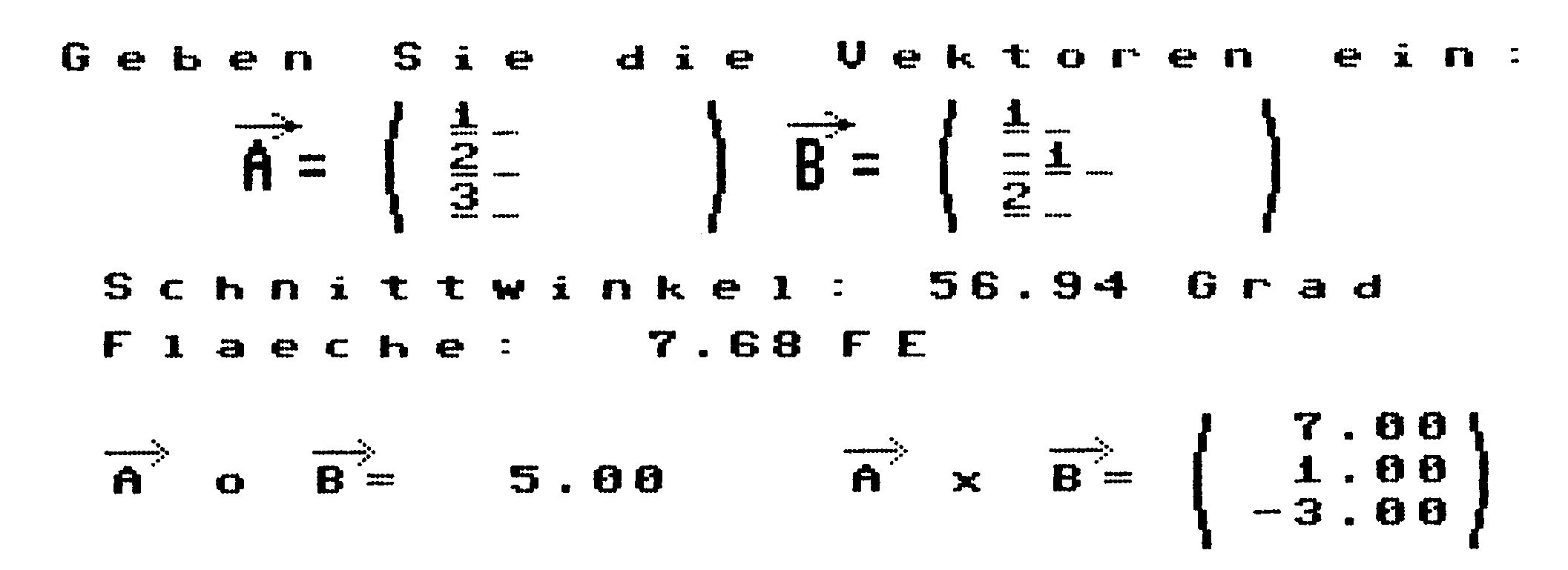Von Ihnen wird die Eingabe zweier Vektoren erwartet.